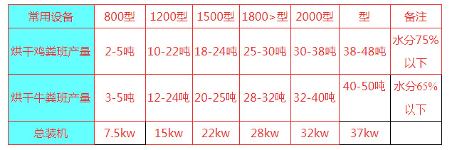雞糞烘干機(jī)技術(shù)參數(shù):