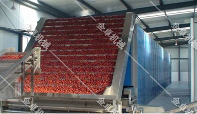 干燥創(chuàng)藝系列:紅棗烘干生產(chǎn)線可實現(xiàn)紅棗從風(fēng)選→分選→滾杠提升→清洗→風(fēng)干→上料→烘干→出料→冷卻、回軟→精選挑選→殺菌→包裝為一體的自動化流水烘干作業(yè),是目前紅棗加工理想的烘干生產(chǎn)線。