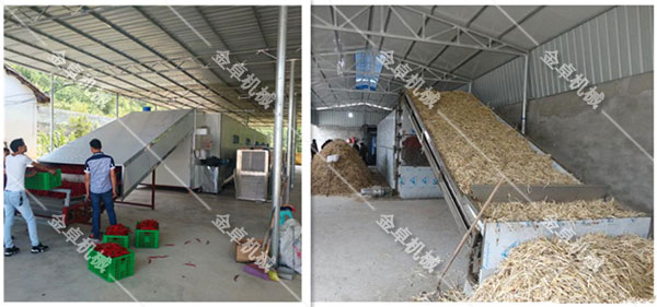 網(wǎng)帶式烘干機廣泛應用于紅棗、柿子、獼猴桃、葡萄、枸杞、香蕉、龍眼等水果的干燥脫水;也可以廣泛應用于花生、杏仁、榛子、松仁、開心果、巴旦木、板栗等干果的干制。包括蘿卜、白菜、辣椒、黃花菜、木耳、香菇、蒜片、生姜等脫水處理;也可以應用于人參、紅花、菊花、馬齒筧、當歸等中藥材的脫水干燥處理,可以應用于生魚片、海參、海帶等海產品的脫水干燥;還可用于對玉米、大豆、小麥等進行干燥處理;還可以應用其它經濟作物、牧草、食物輔料等其他領域的干制脫水。